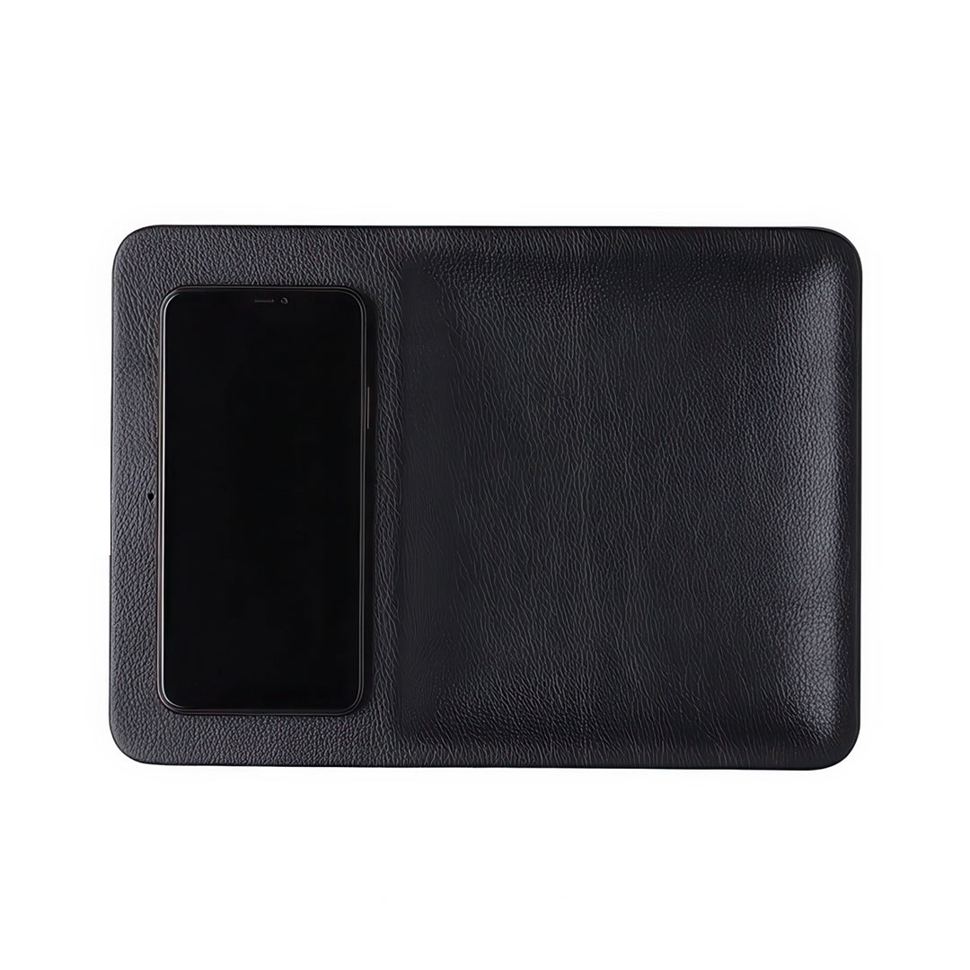 AuraHub gives you a secure, non-slip surface that keeps your phone in place while charging, preventing accidental slips and scratches. Whether you're working at your desk or getting ready for bed, this keeps your phone within arm’s reach. Plus, its smooth PU leather surface doubles as a premium mousepad, making it the perfect all-in-one solution for your workspace or bedside.