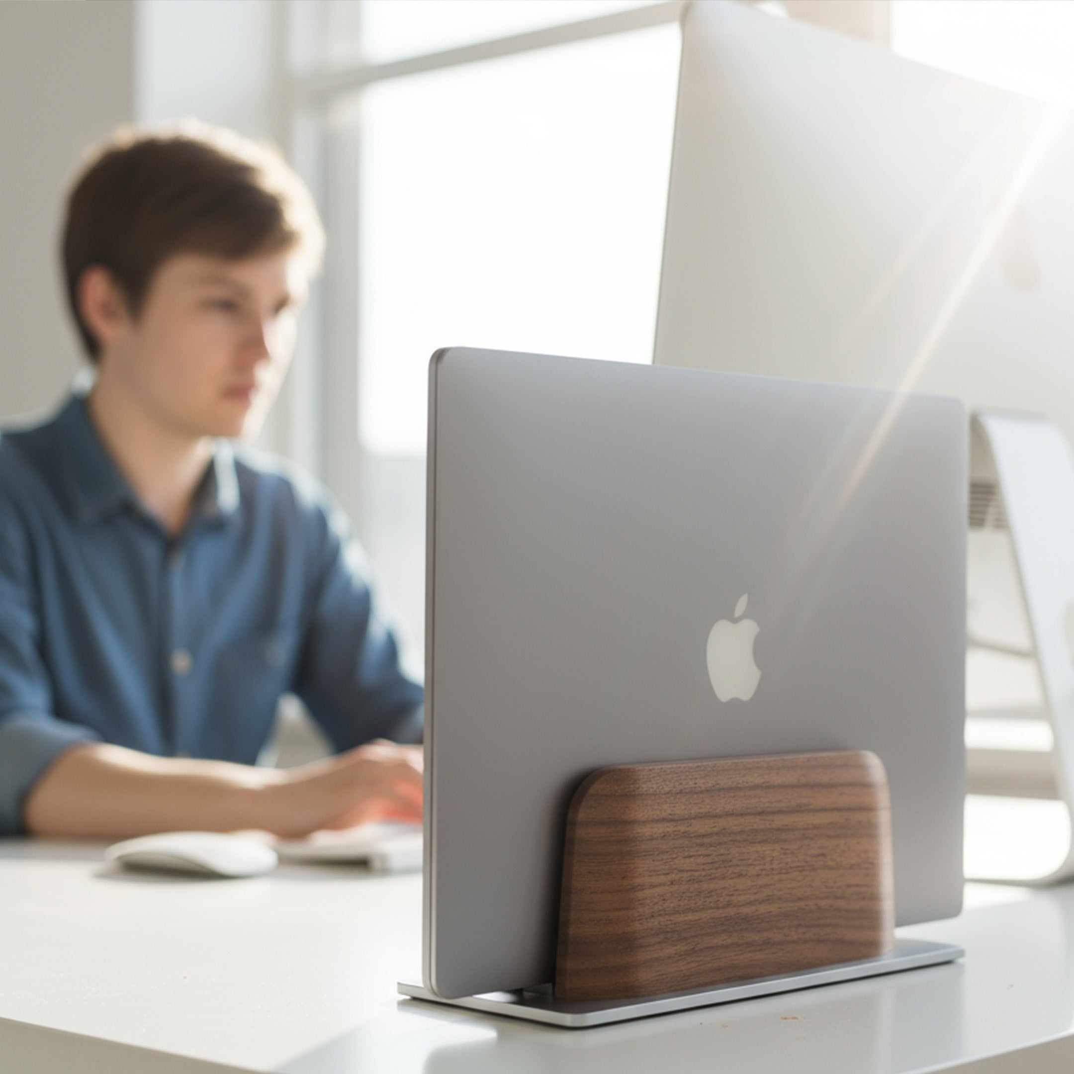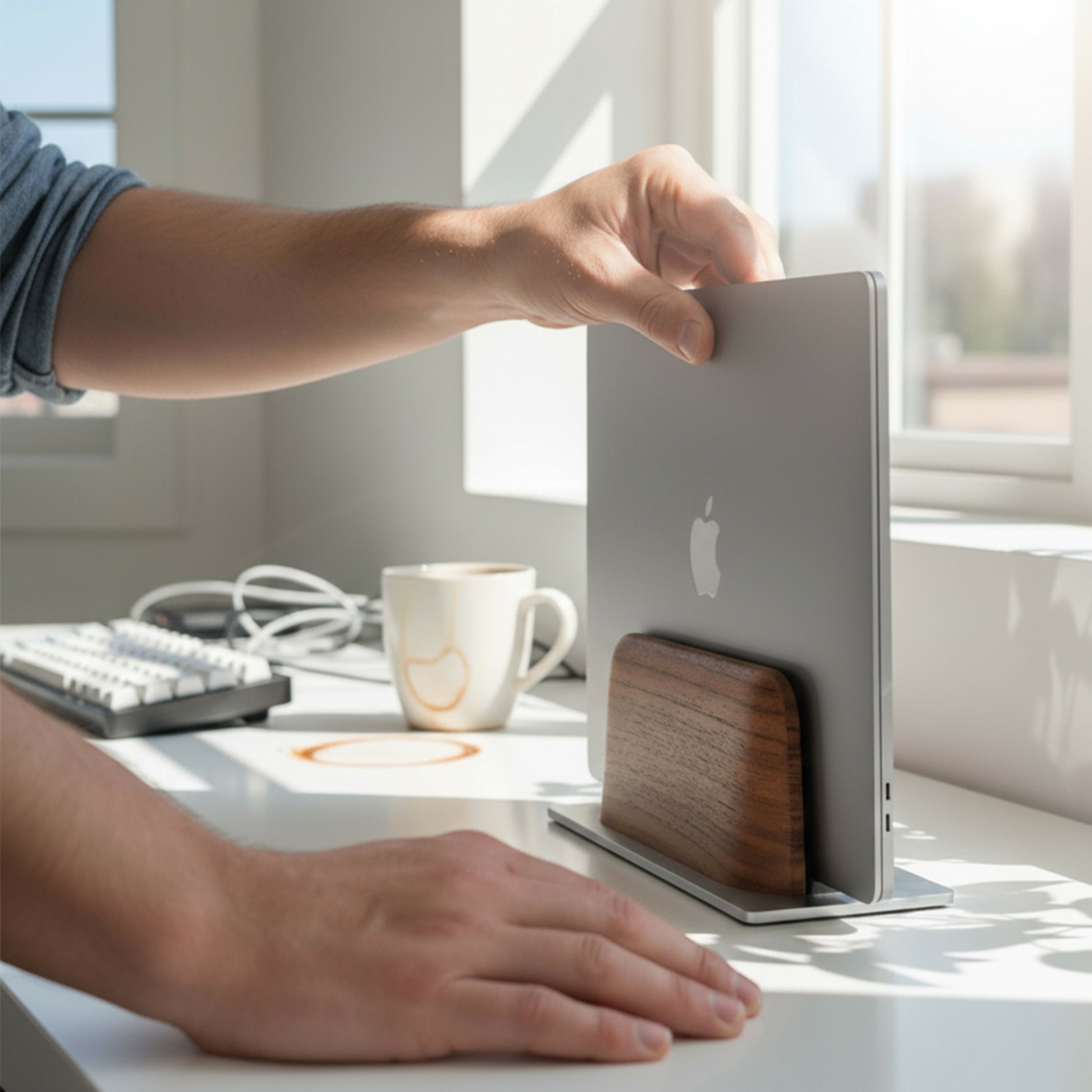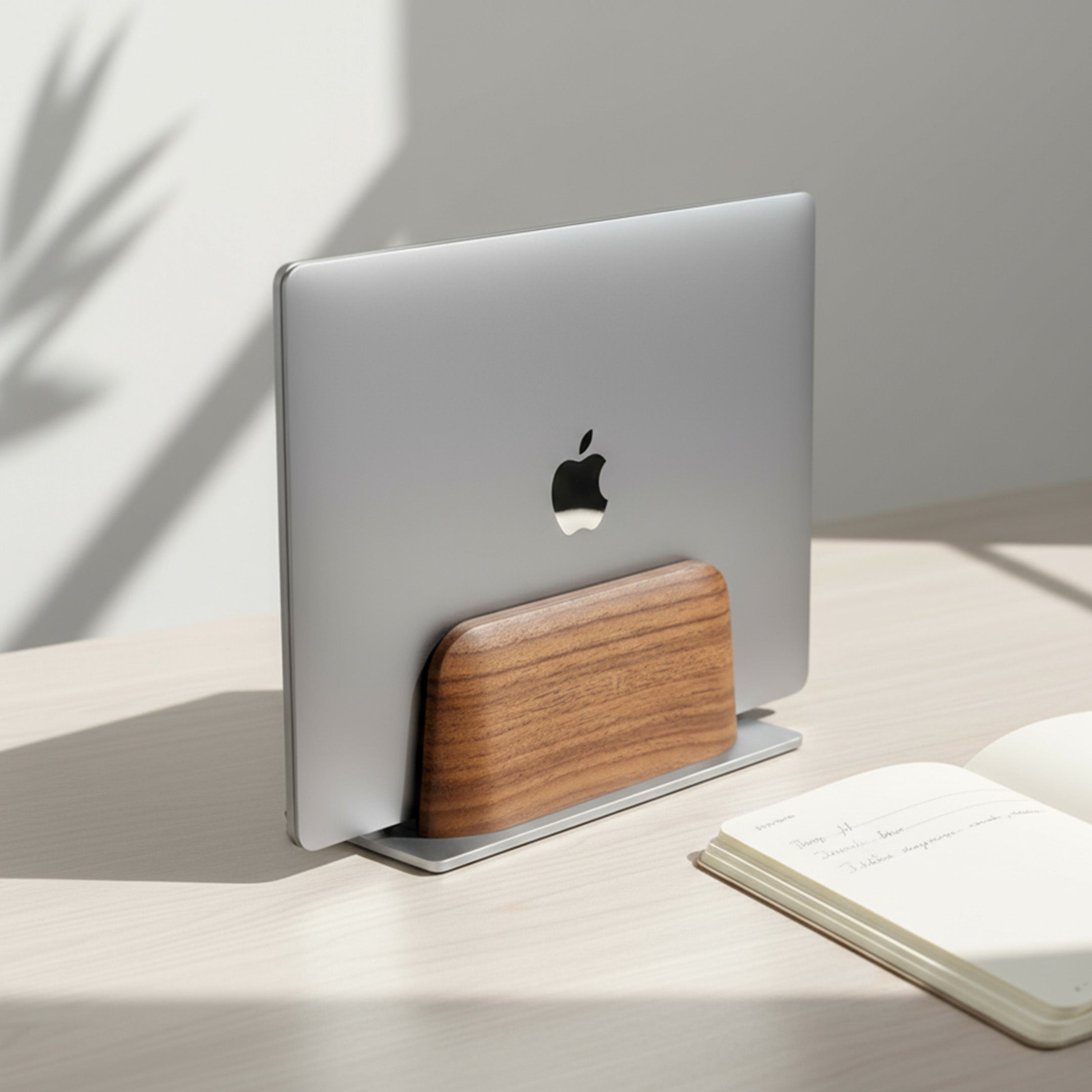 Visual clutter creates mental clutter. That flat, bulky laptop sitting in the middle of your desk? It’s stealing space and attention. The Wooden Vertical Laptop Holder helps you reset your environment and your focus. It gives your device a home while freeing up space for what matters.
